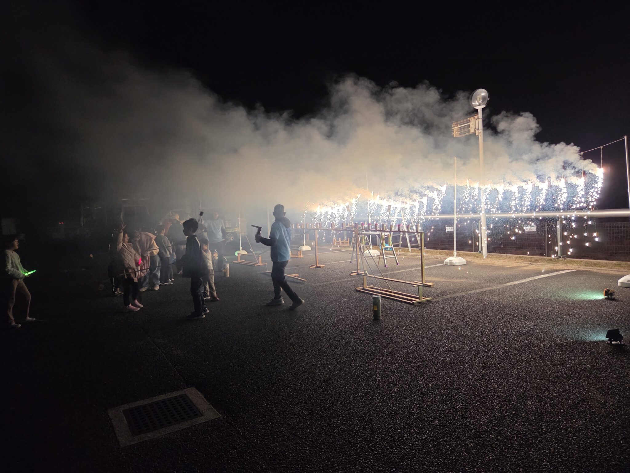11/8(土)豊川彩幸 創立25周年記念「玩具花火」を開催し80名程にご参加頂きました。 肌寒い感じではありましたが秋の花火は夏とは違う趣で楽しむことができました。 合間にはフランフルトを食べたり、お菓子掴みに挑戦したりと子供さんの声も聞こえ賑やかな時間となりました。