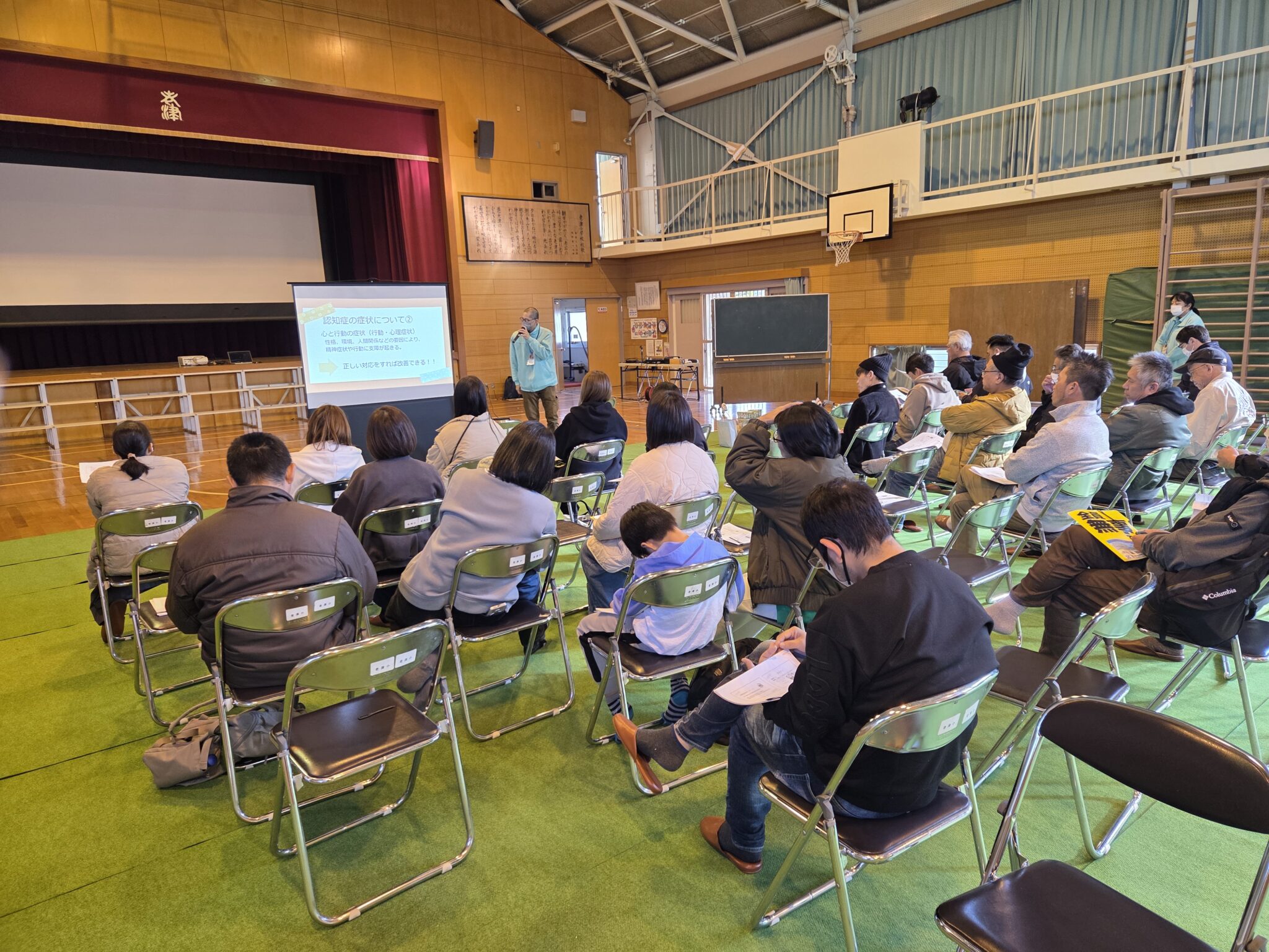 11月22日に老津校区自治会の防災訓練へお邪魔し、認知症サポーター養成講座を開催させて頂きました。この講座は認知症の方を支えるために、病気を理解し接し方や声の掛け方を学ぶことを目的に開催されています。