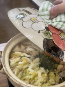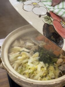 昼食にはお鍋、茶わん蒸しをいただきました。