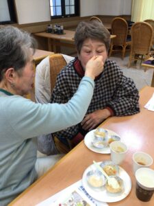 その後の、食事介助体験会は「思ったよりもおいしかった」「食べさせてもらうより、自分で食べた方がいい」「毎日の介助や食事となるとね・・・」など改めて健康の大切さを実感されていました・・・。