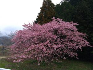 先週は、まだ蕾の状態だった河津桜が、1週間で満開になっていました。